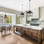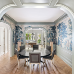 Formal living and dining rooms, as well as the chef’s kitchen, are located on the home’s parlor level. The kitchen boasts high-end touches like Ondulare Fantastico marble countertops, elite appliances from Lacanche and Sub-Zero, and a windowed breakfast nook.