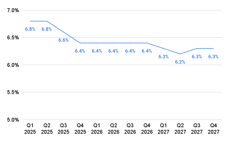 MBA economists expect rates on 30-year fixed-rate mortgages to average 6.4 percent all next year before dipping to 6.2 percent by Q2 2027.